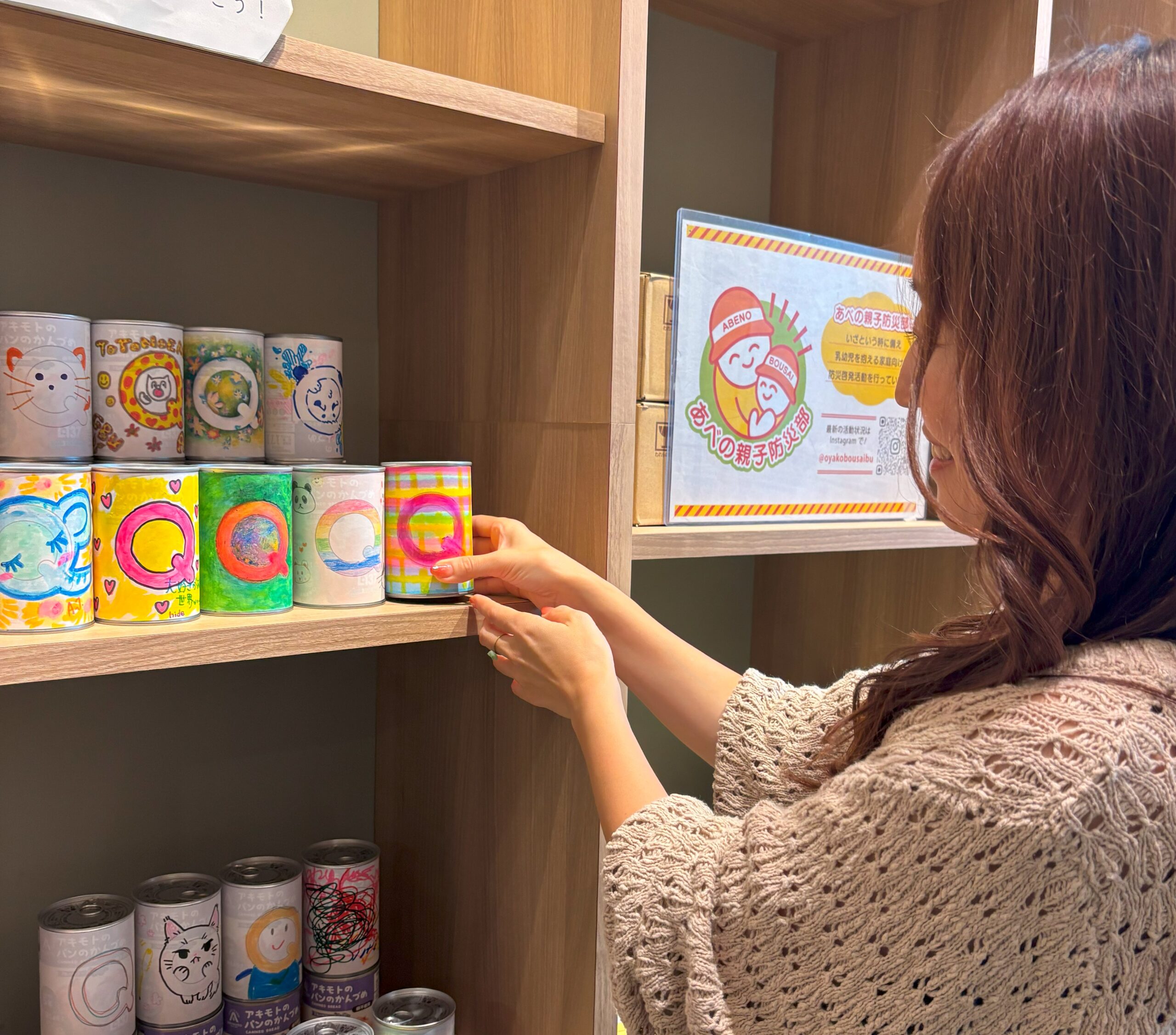 ・備蓄用の缶を子どもの作品として飾れるのが画期的だと感じました。「この中にパンが入ってるんだよ」と子どもにも伝え、有事の際に、私が出さなくても食べることができる食料があるという安心感にもなりました。