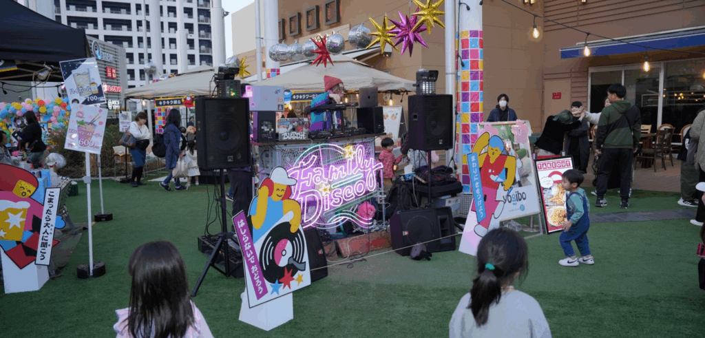ファミリーディスコは、場所に左右されない楽しさがあると感じています。音楽と光と、家族のテンションさえ揃えば、どこでも“特別な夜”が生まれる。その自信があるからこそ、今後は大阪だけでなく、関西圏、さらには全国のまちへ広げていきたいと考えています。商業施設、公園、地域イベント、屋内外問わず、「家族で夜を楽しめる文化」を届けたい。その土地ならではの音楽や出店者さんとコラボしながら、地域ごとに色の違うファミリーディスコを育てていくことが目標です。