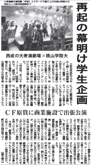 再起の幕明け学生企画 西成の大衆演劇場×桃山学院大 CF原資に商業施設で出張公演 /大阪 | 毎日新聞