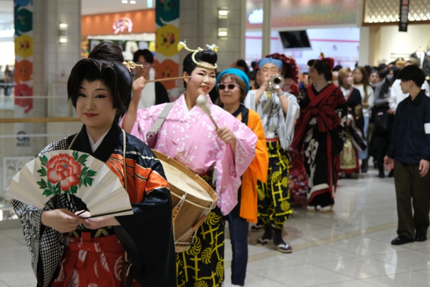 形態:大阪市西成区のオーエス劇場の活性化を目的とし、桃山学院大学のサークル「地域連携委員会-NEXUSWORKS」の学生が準備を進めてきた企画で、あべのキューズモールにて館内の練り歩きと舞踊ショーを実施。